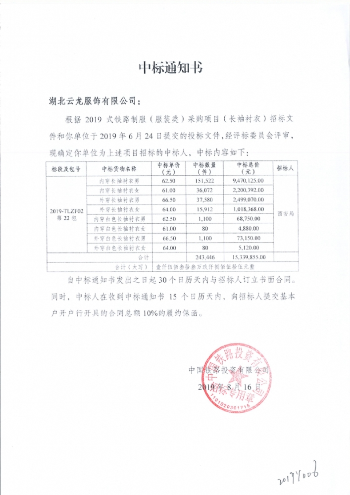 2019式鐵路制服(含服飾類(lèi))采購項目武漢局