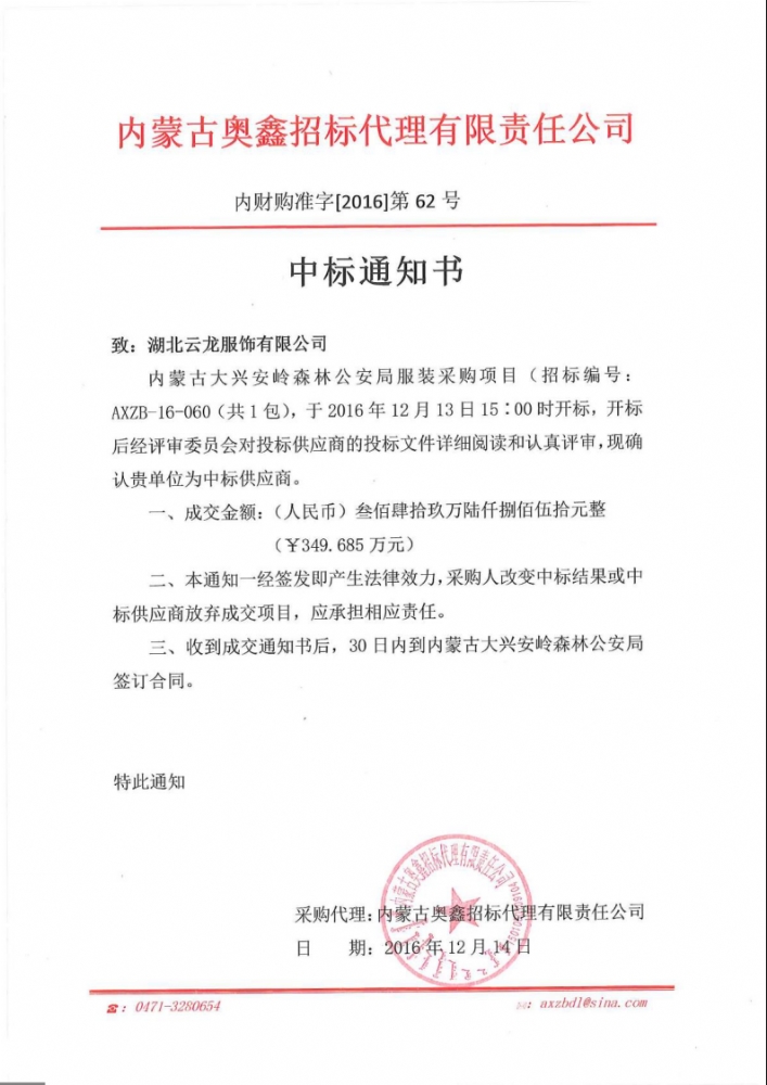 內蒙古大興安嶺森林公安局民警服裝采購項目