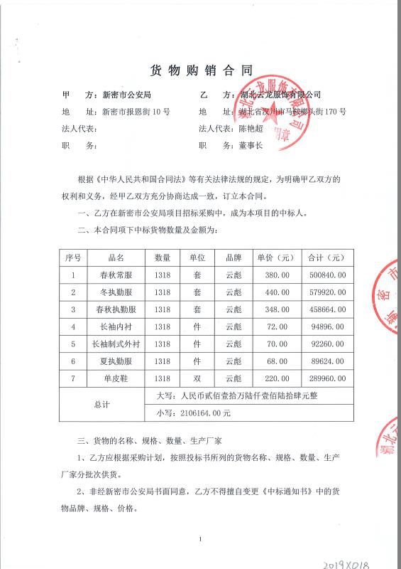 新密市公安局應急服務(wù)人員、輔警、巡防隊員購置服裝項目